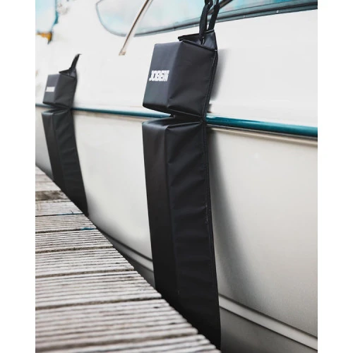 The fender stay put and can easily be stowed under boat seats. They hinge to wrap around the gunwale and hull, following the contours of the boat. The fender is constructed of a marine-grade tri-laminate cover with closed-cell foam inside. There’s a tough polycarbonate grommet at each end for hanging from cleats.